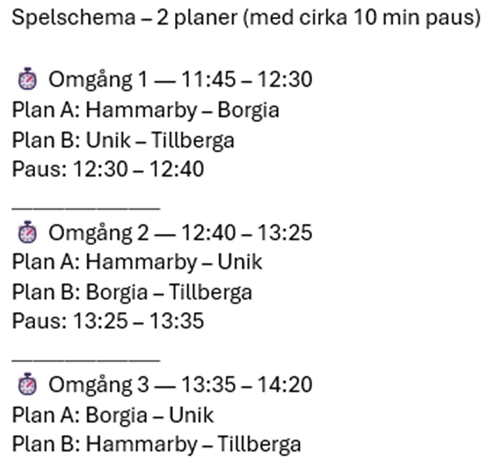Spelschema Uppsala 1 feb